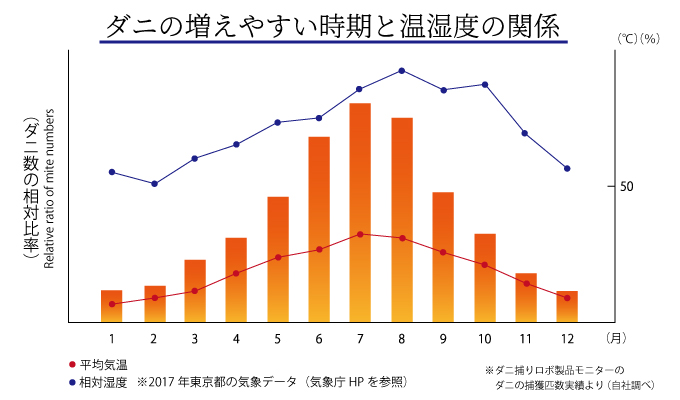 - ダニが好む環境=25〜30℃・湿度60%以上
