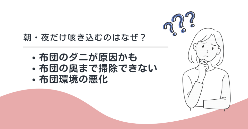夜や朝だけ咳が出るのは、体の問題ではなく「布団環境がアレルギーを引き起こしているサイン」かもしれません。
